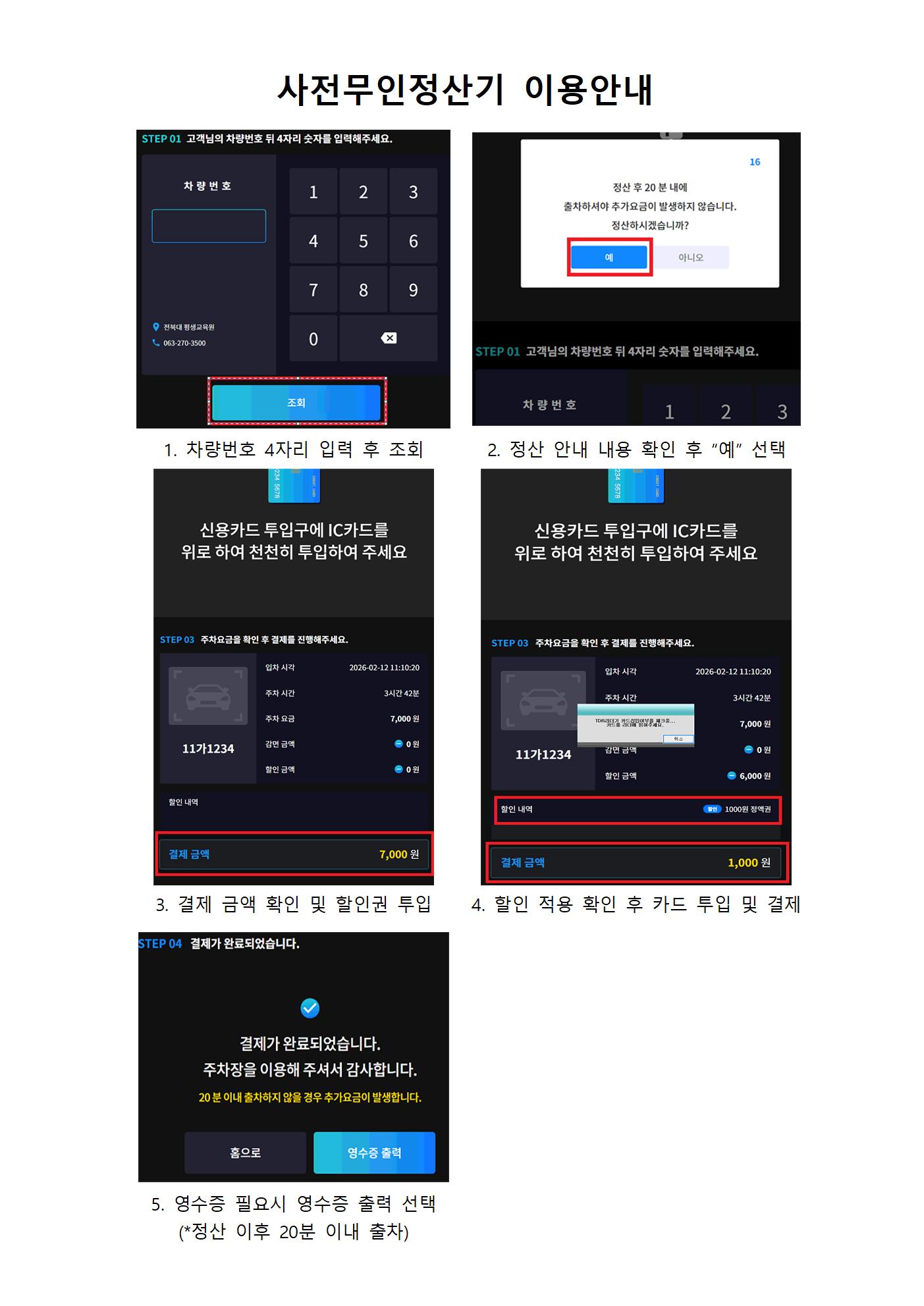 주차요금 사전무인정산기 설치에 따른 이용방법 안내